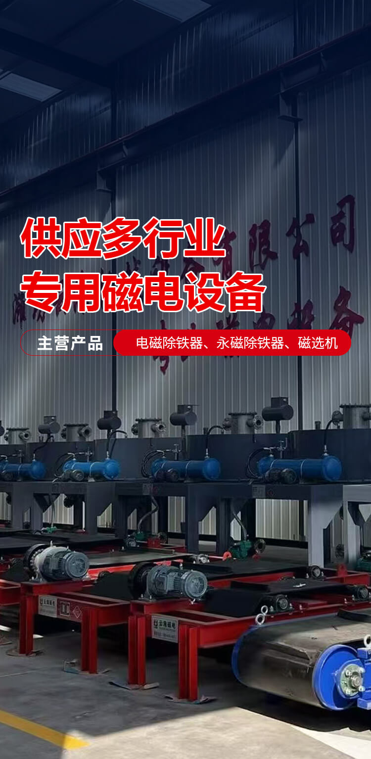 濰坊云海機械設備有限公司始建于2009年,是生產磁電機械設備的廠家。系生產建材、冶金、礦山、化工等行業微機自動化、檢測、控制專用設備的公司。主要產品工業自動化配料系統、電磁永磁除鐵器、永磁磁選機、電磁振動給料機、皮帶螺旋輸送機、電磁滾筒、破碎機、包裝機 、除塵器等系列產品。